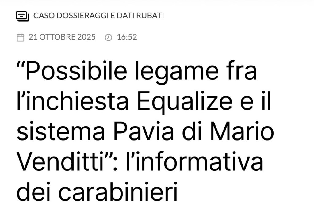 Potrebbero intrecciarsi le inchieste sul cosiddetto “sistema Pavia” e sui presunti dossieraggi abusivi che sarebbero stati prodotti da Equalize. È quanto emerge da un’informativa del 13 marzo che i carabinieri del nucleo Investigativo di Varese hanno depositato agli atti del fascicolo milanese sull’azienda di sicurezza e investigazioni fondata da Enrico Pazzali. Dai tabulati, infatti, sarebbero emersi “numerosi contatti” tra Vincenzo De Marzio, l’ex carabiniere del Ros e membro dei servizi segreti indagato per associazione a delinquere e accesso abusivo a sistema informatico, e Agostino D’Arena, anche lui ex membro del Ros dei carabinieri e padre di Cristiano e Raffaele, i titolari della società di intercettazioni Esitel che, secondo la Procura di Brescia, avrebbe pagato a Mario Venditti pranzi in ristoranti stellati e venduto auto a prezzi scontati in cambio “dell’affidamento pressoché esclusivo” del “noleggio degli apparati”per le captazioni da parte della Procura di Pavia.