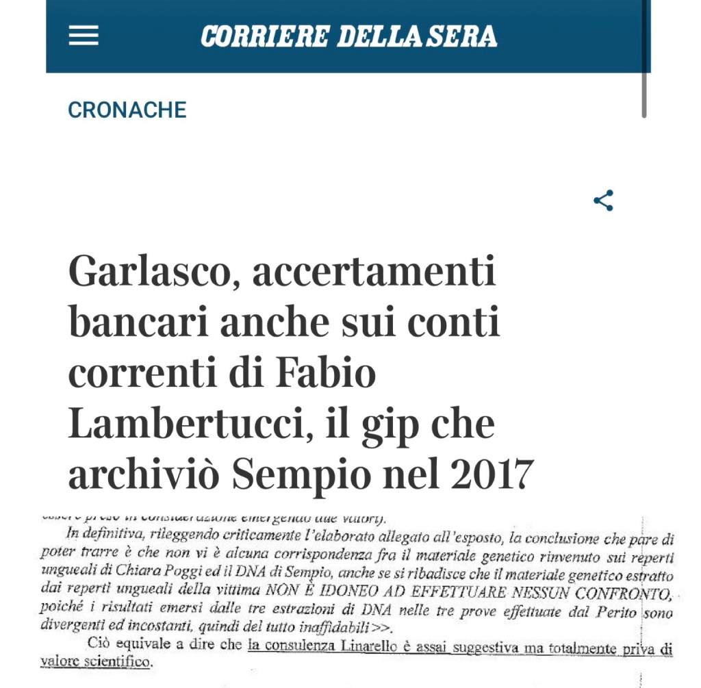 Anno 2017. Il giudice Lambertucci, archiviando il caso Sempio, scrisse: “La consulenza Linarello è assai suggestiva ma totalmente priva di valore scientifico”.