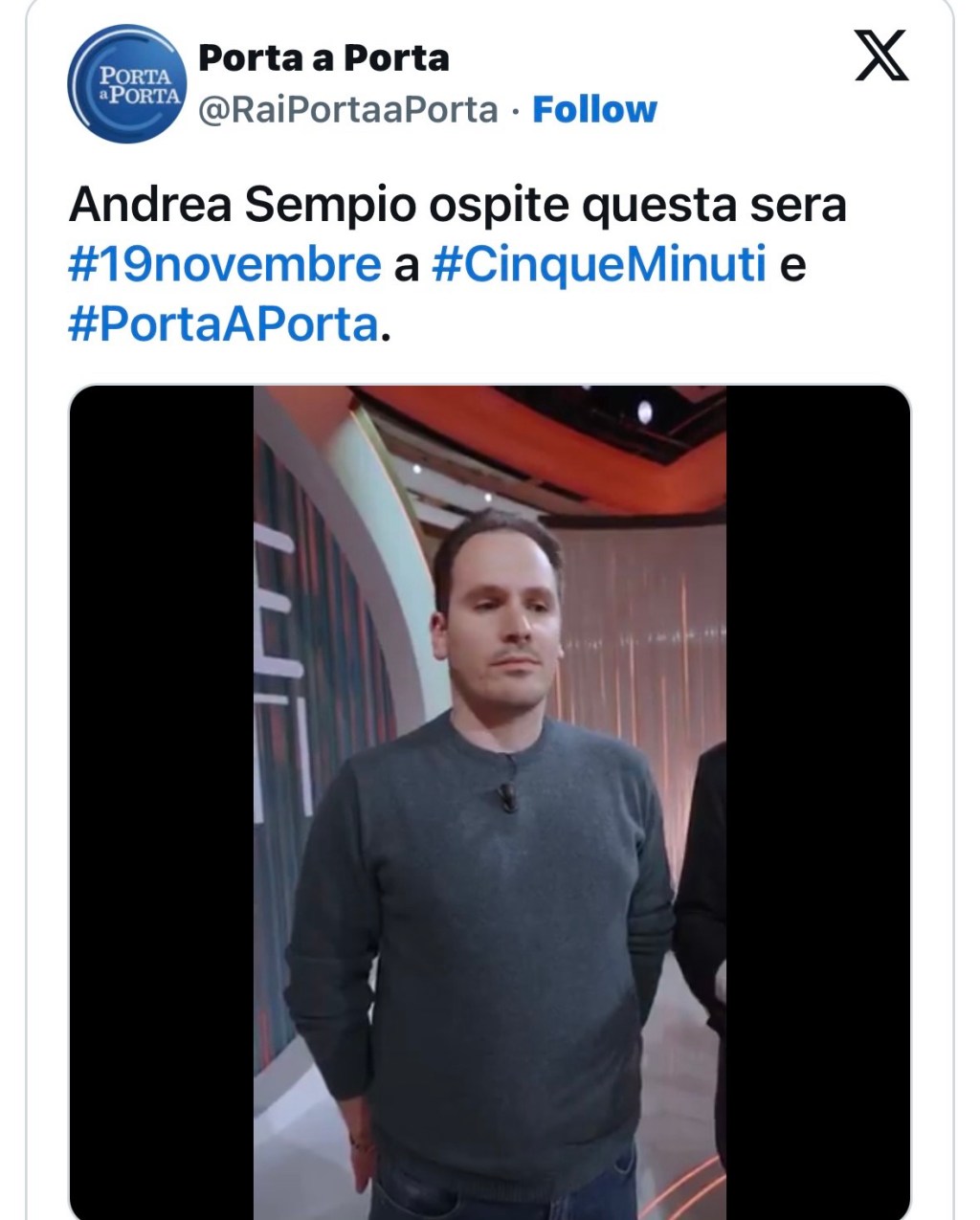 Carrellata di Sempio su Rai 1. Prima a 5 minuti con Bruno Vespa. Poi a Porta a Porta.