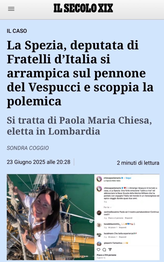 Vi ricordate Tarzan a La Spezia, sull’albero della nave Vespcci, che tanto clamore fece? Beh, c’è l’indagine in corso. E chi ha denunciato è il Sindacato dei Militari.