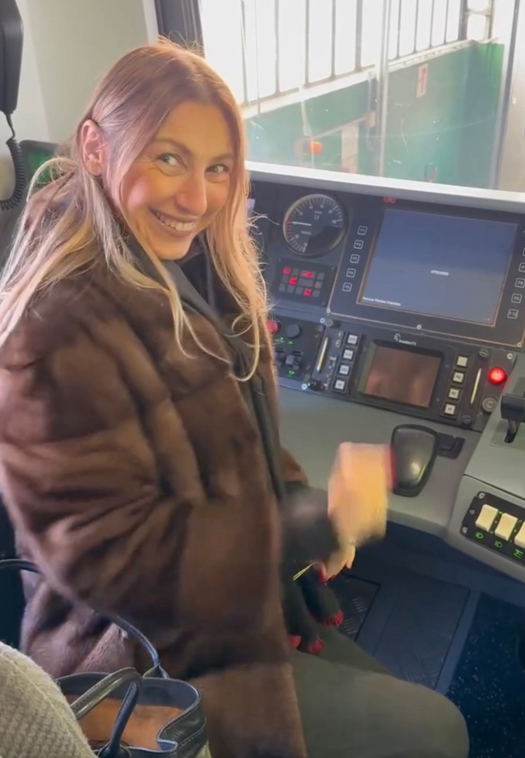 Paola di Voghera si presenta alle officine ferroviarie di Voghera, con la pelliccia di visone.