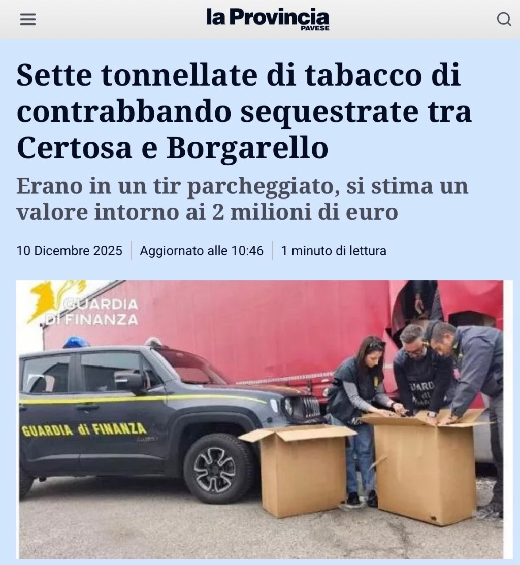 Al debutto il contrabbando di tabacco per produzione di sigarette.