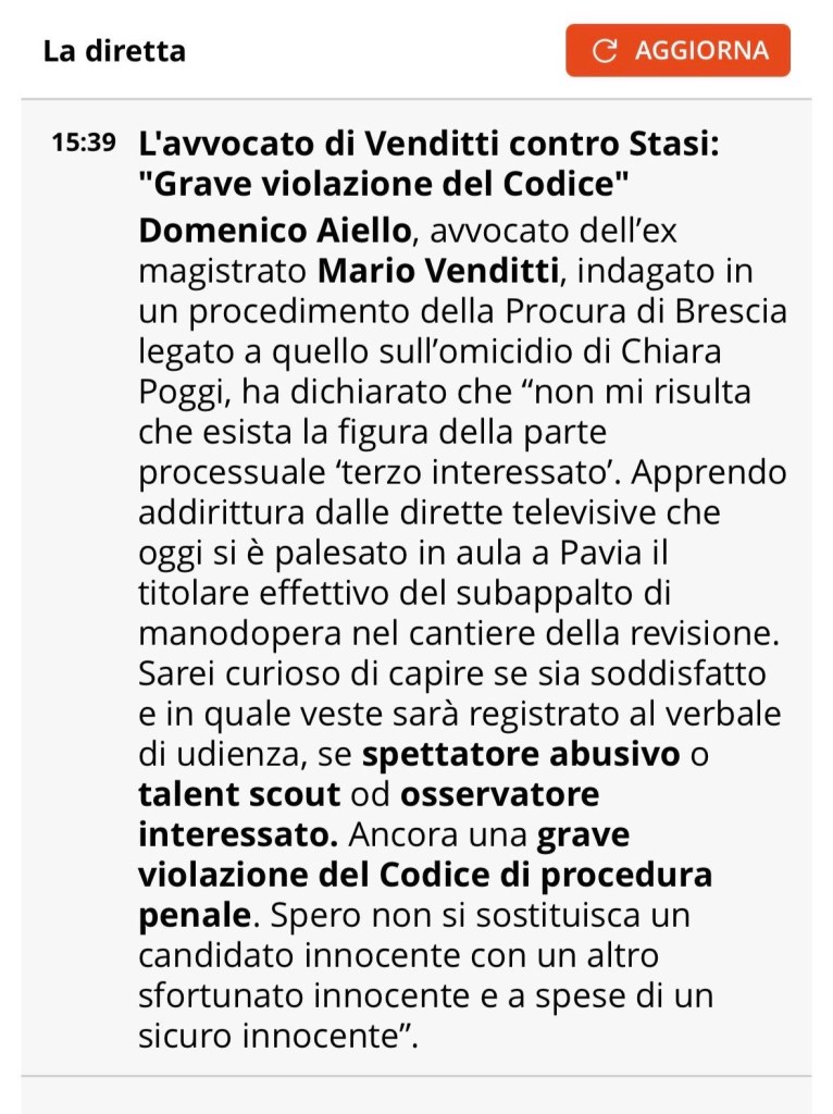 Il difensore di Marco Poggi, Francesco Compagna, ha chiesto che Alberto Stasi uscisse dall’aula. Ma il gip Garlaschelli lo ha fatto restare, perché suo diritto.