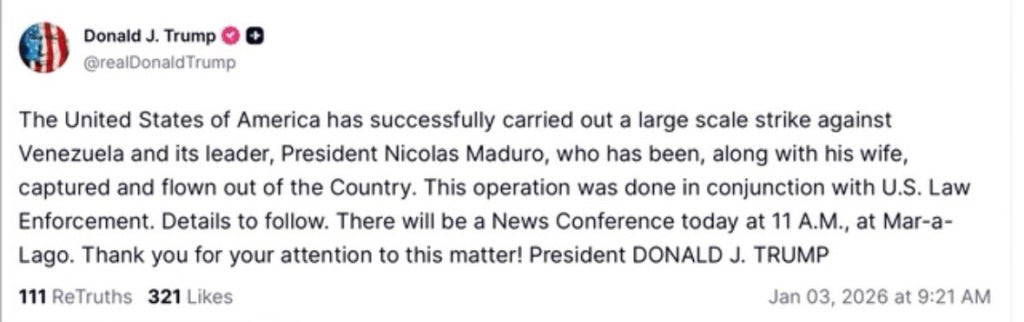 Il presidente venezuelano è stato acchiappato ed è già fuori dal paese, in viaggio per gli Stati Uniti.