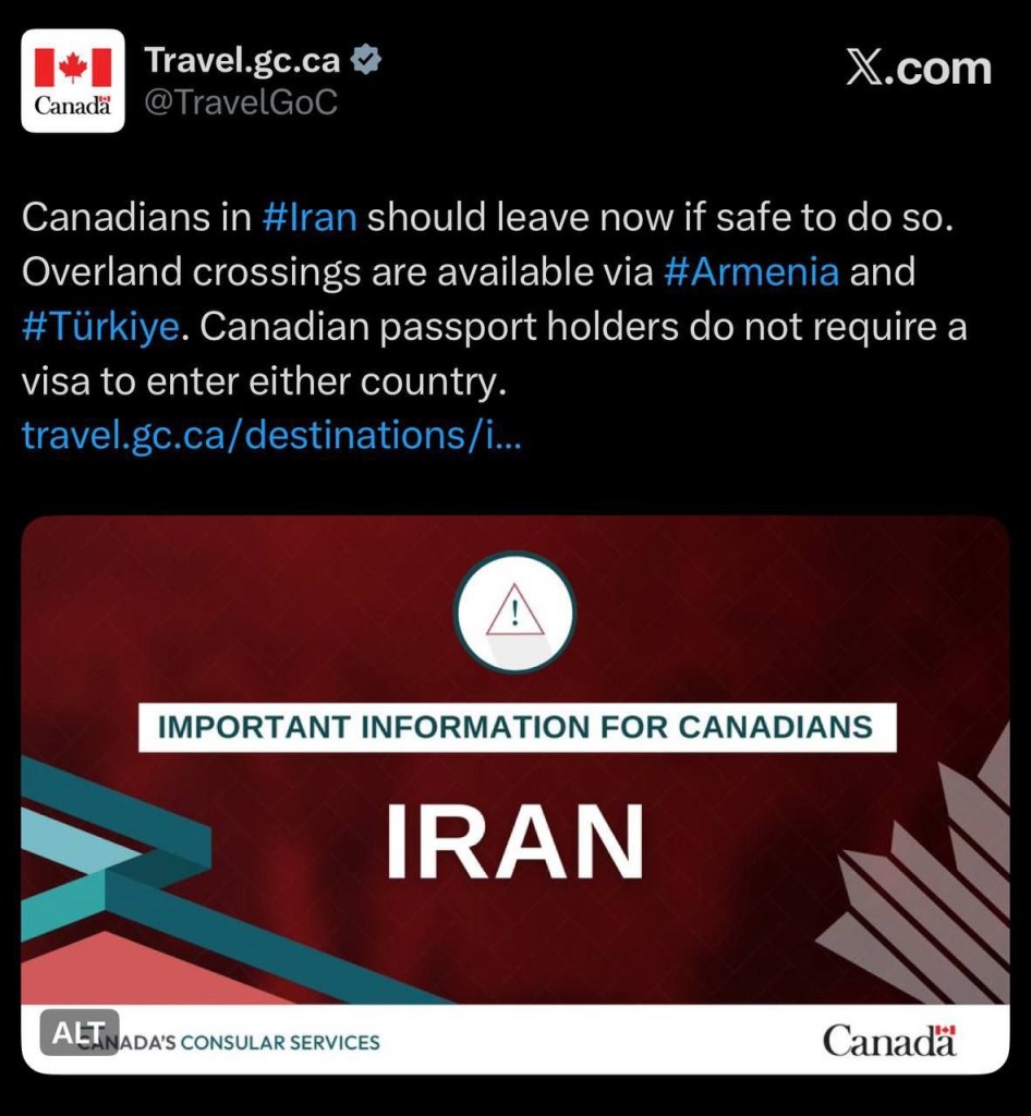 Il Canada ha emesso un avviso di viaggio ai suoi cittadini in Iran: