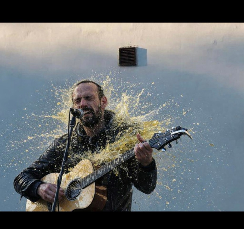 Un bel gavettone in arrivo, senza Paragon ma giallo paglierino, offerto dal blog anonimo, ad un follower speciale che suona la chitarra.