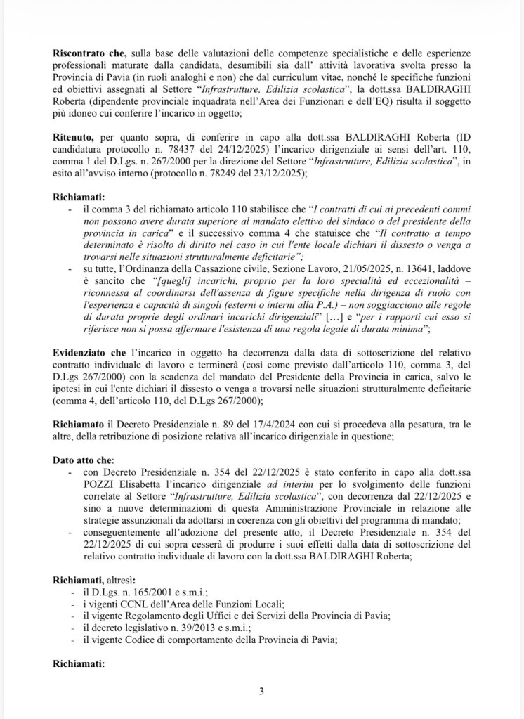 Qualora il Regolamento sull’Ordinamento degli Uffici e dei Servizi (ROUS) della Provincia prevedesse termini minimi per la valutazione comparativa o criteri specifici di punteggio, la velocità della nomina del 7 gennaio potrebbe costituire una violazione diretta delle norme interne, rendendo l’atto annullabile in sede di giustizia amministrativa.