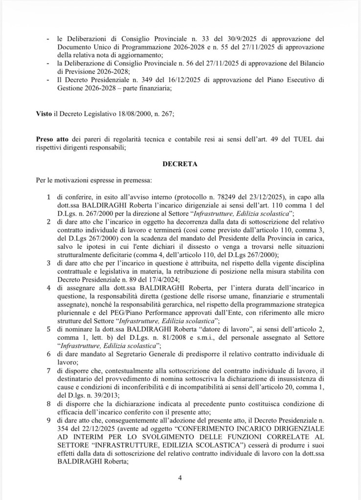 L’atto revoca contestualmente un incarico ad interim conferito solo il 22/12/2025.