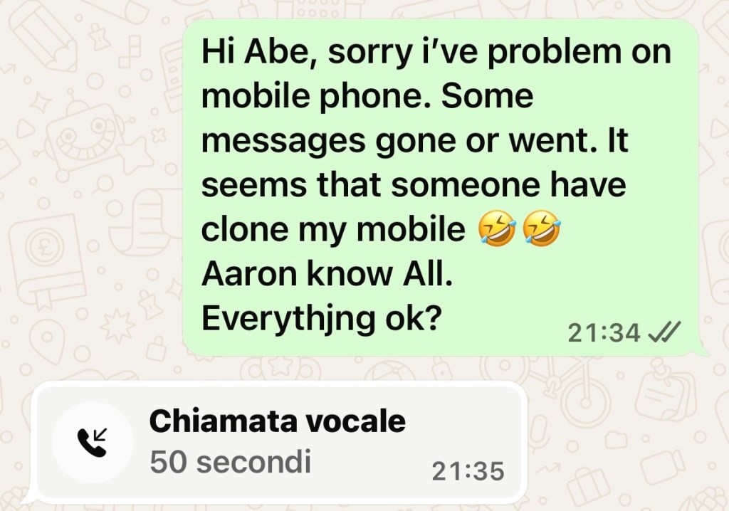 Ha ricevuto una una telefonata alle 21:35 di domenica 25 gennaio, di un suo amico, mentre tutto eran lì a spiare, che ha posto fine al tutto, e a tutti.