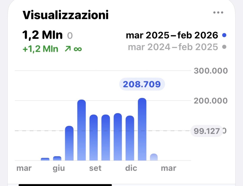 In 7 mesi siamo a 1,2 mln di visualizzazioni come Luce Pavese e i suoi derivati.