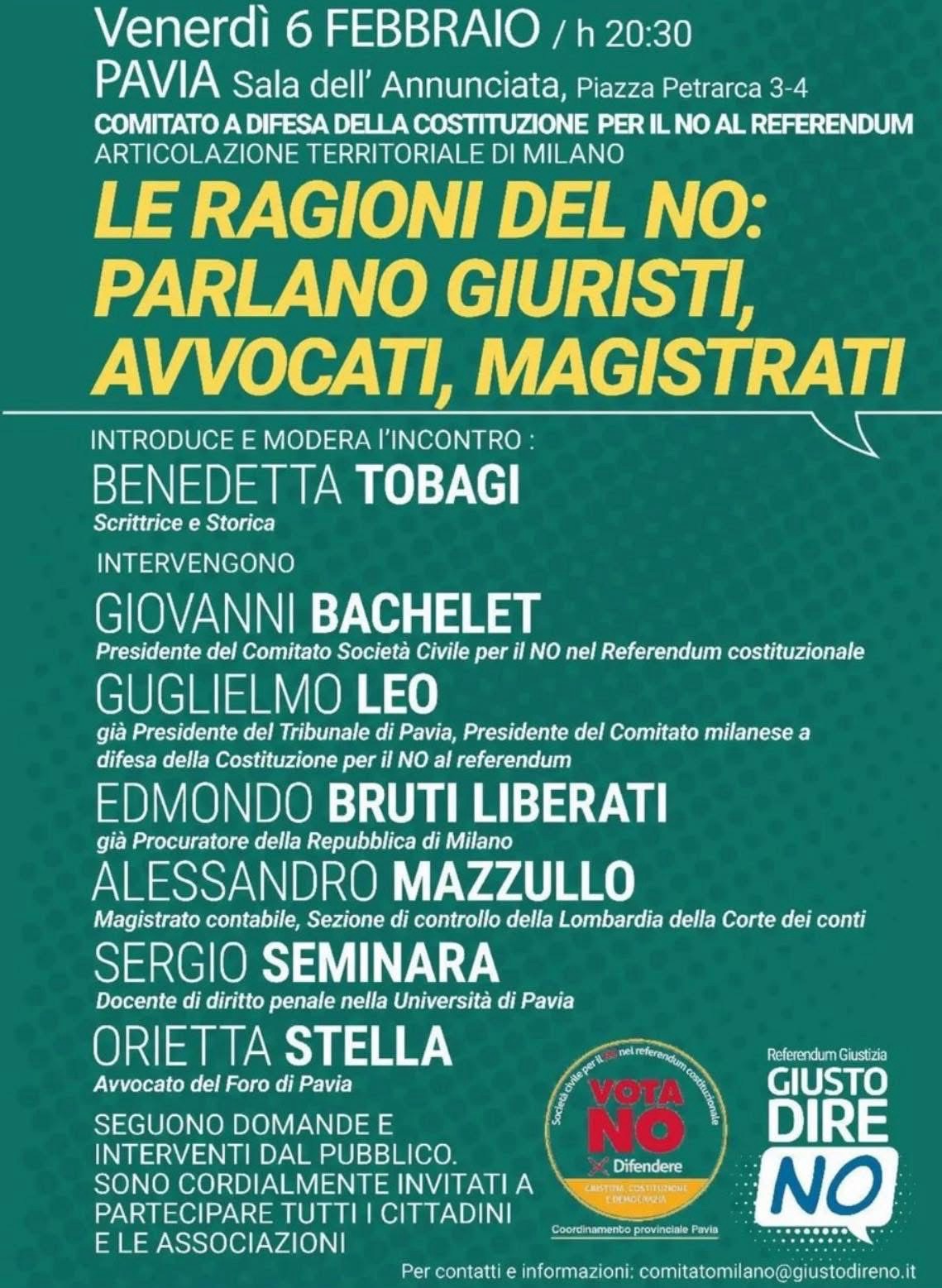 Pienone alla sala dell’Annunciata a Pavia per la presentazione del No al referendum sulla riforma della giustizia.