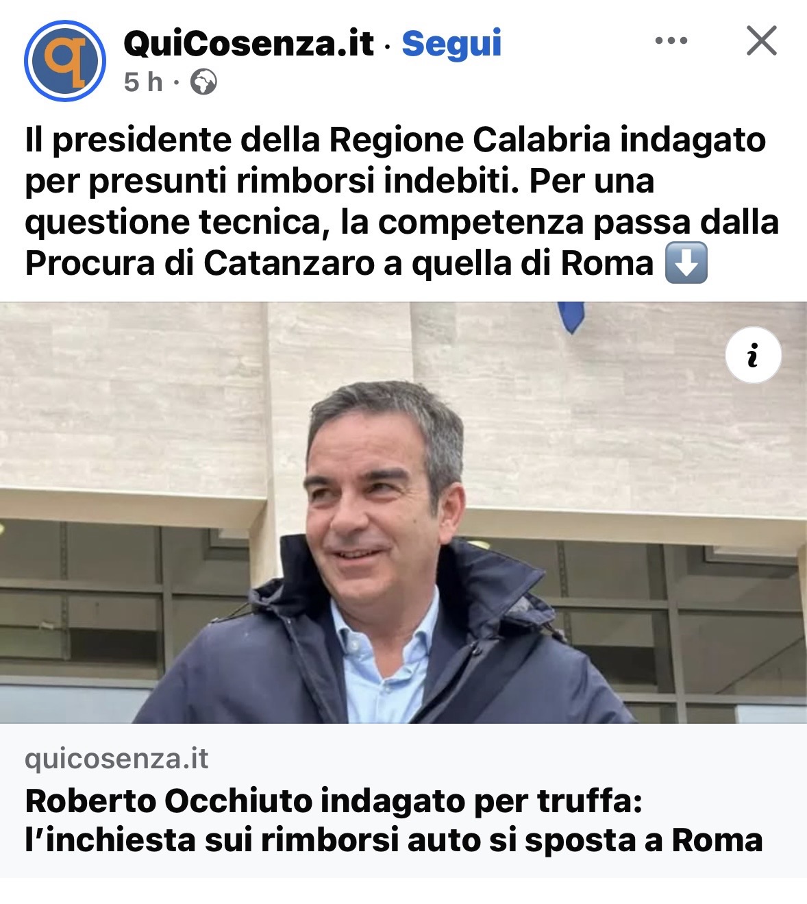 Solidarietà al Presidente Occhiuto, che non sapeva della portata del Talismano locale pavese.
