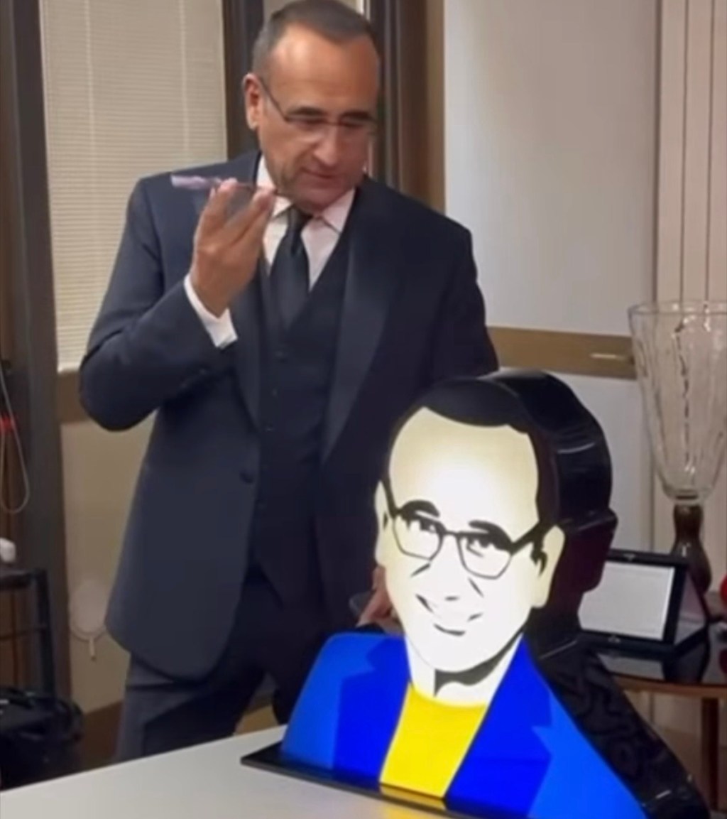 L’artista Marco Lodola ha creato per Sanremo il busto di Carlo Conti.