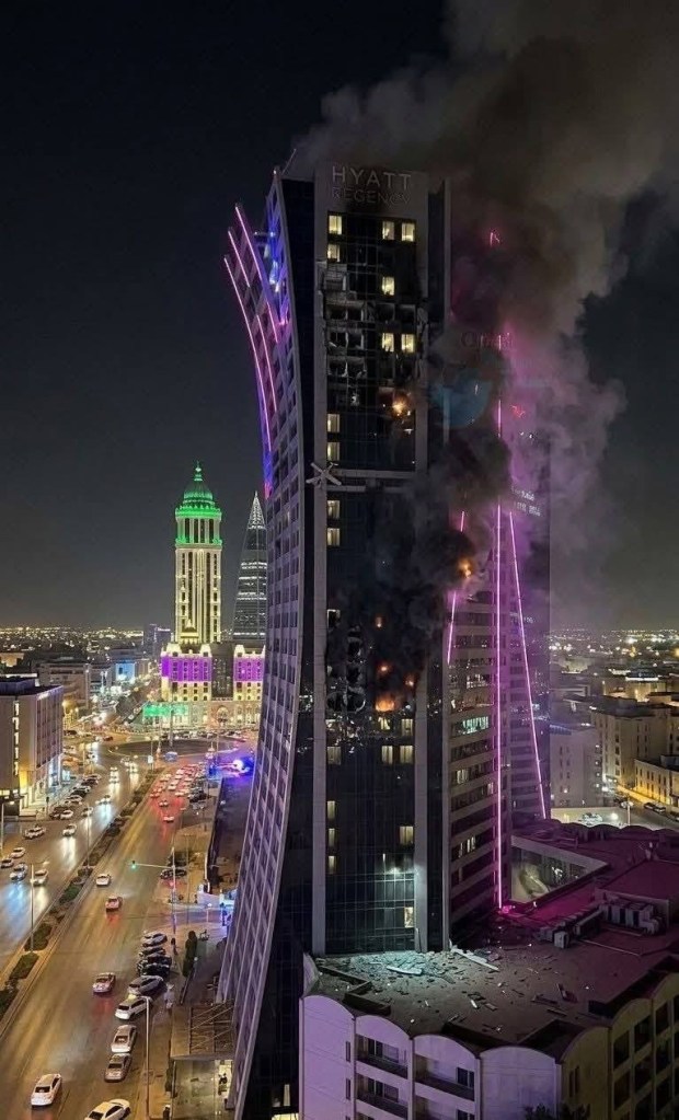 Durante la notte è stato anche colpito con drone iraniano l’hotel Hyatt Regency nella Capitale saudita Riad. Oltre a numerose e diverse strutture.