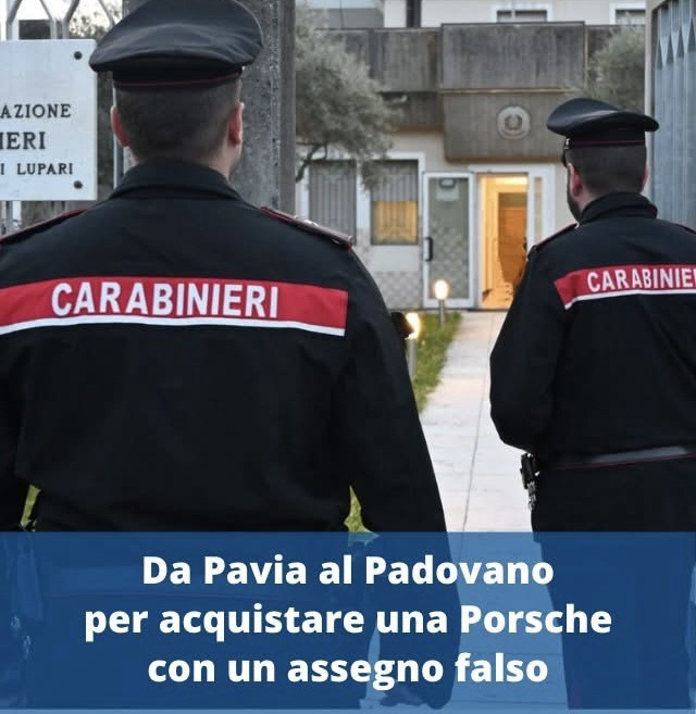Un commerciante padovano ha sventato la truffa di una Porsche da 65mila euro smascherando un assegno falso grazie a un controllo bancario. I Carabinieri hanno teso un’imboscata nell’azienda e denunciato due uomini della provincia di Pavia che tentavano di sottrarre l’auto di lusso.