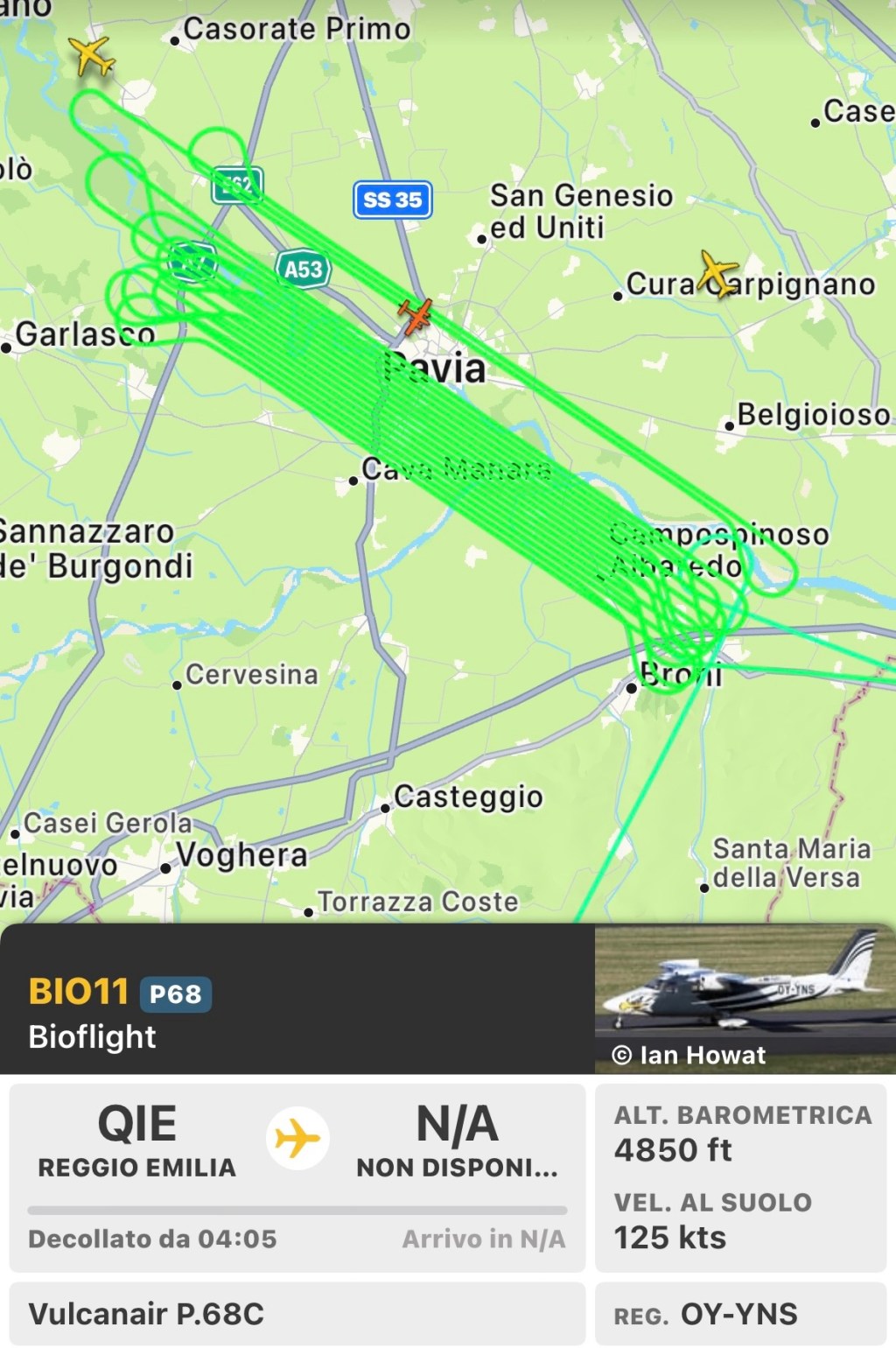 Aereo immatricolato in Danimarca, ma di base in Italia.