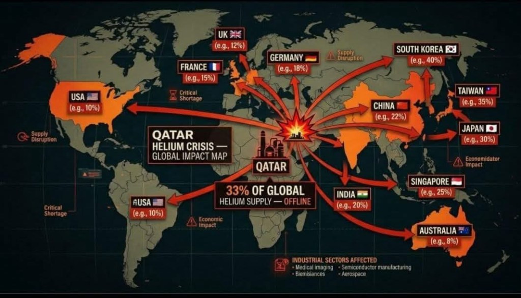 L’Iran ha bombardato l’impianto di elio del Qatar. Il 33% della fornitura globale è sparito. Da un giorno all’altro.