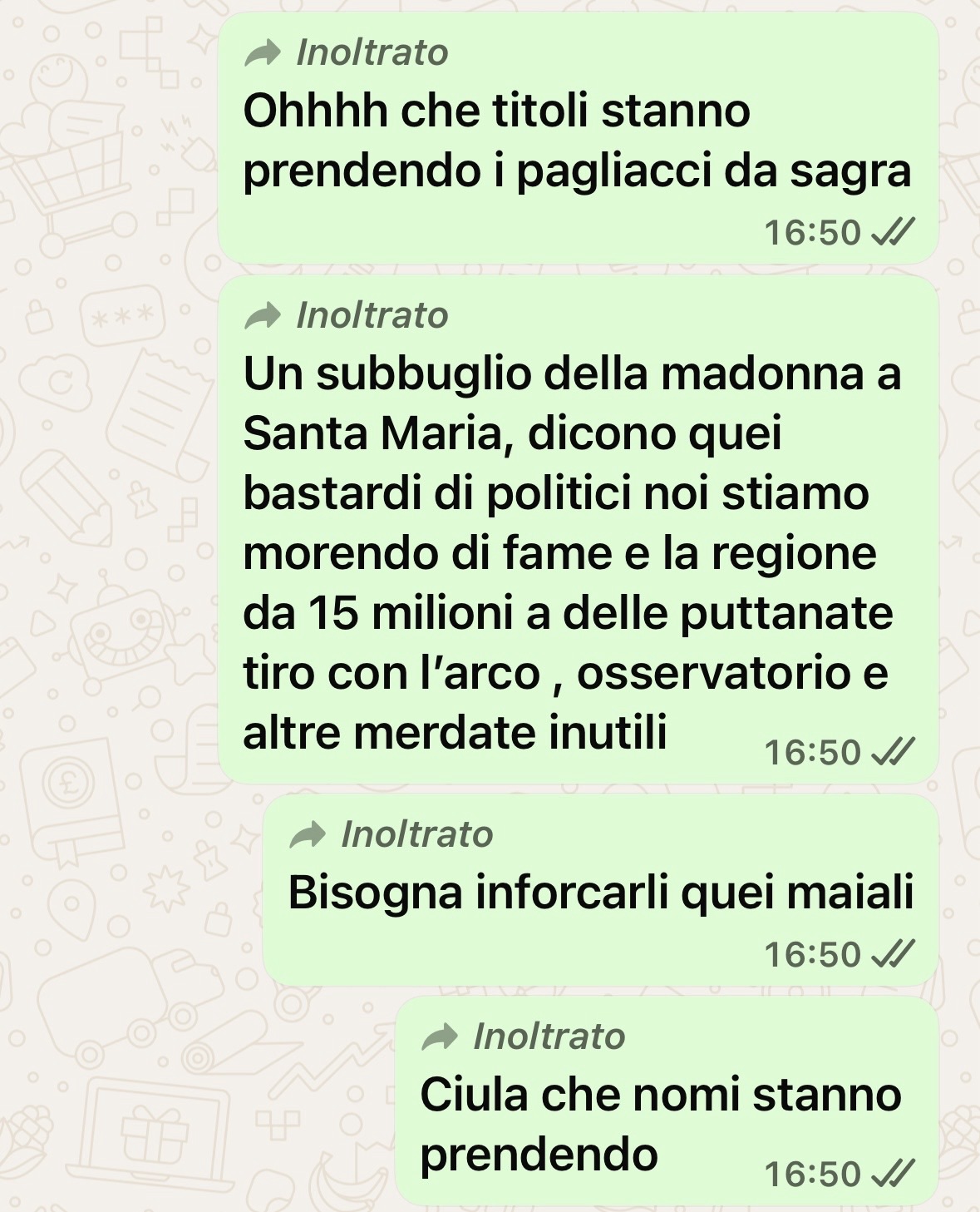 Da Santa Maria della Versa però, il bollettino segna bufera. Non è chiaro con chi ce l’abbiano:
