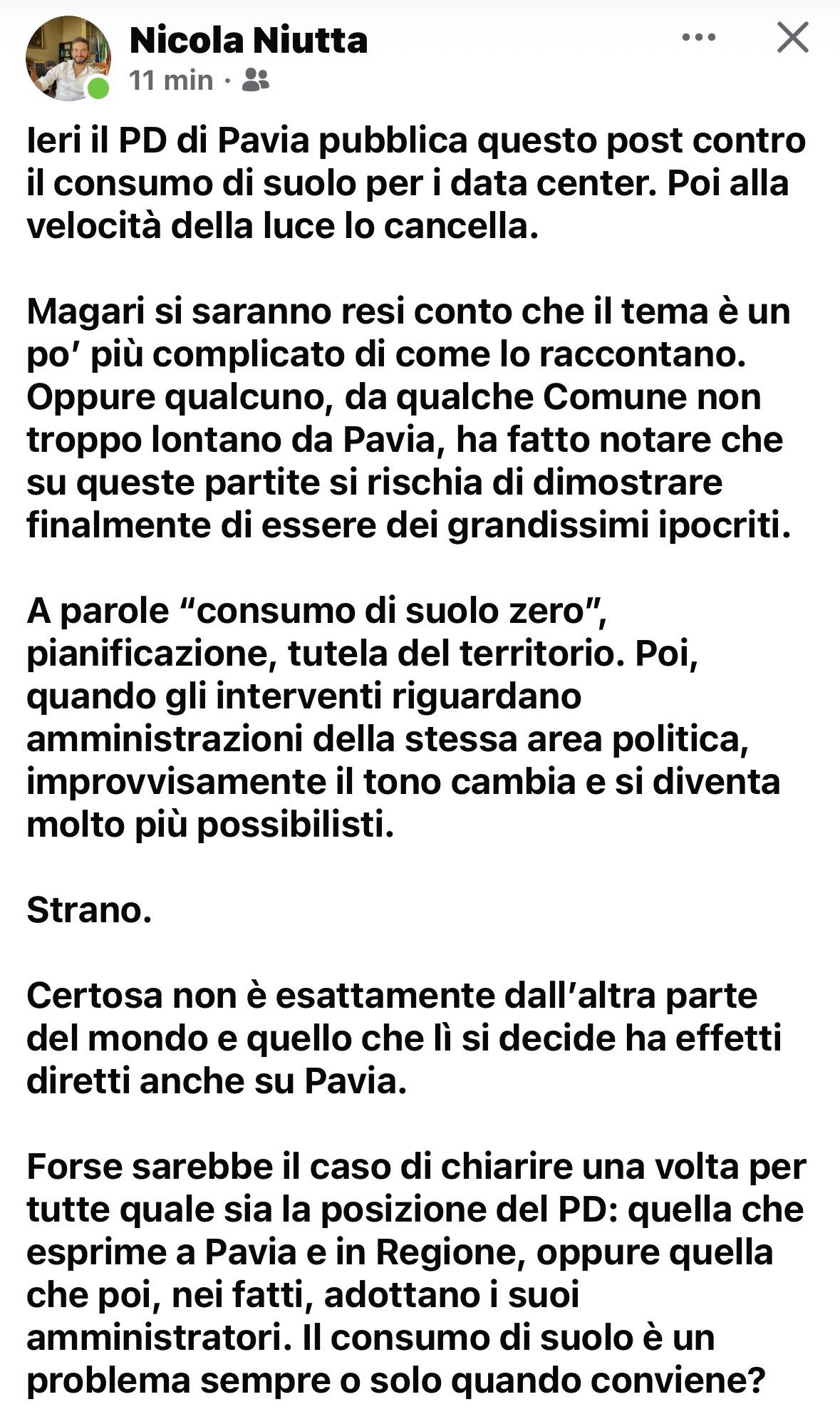 Al Gabibbino non sfugge, e come segretario cittadino di Fdi, e capogruppo in consiglio comunale a Pavia, fuori dal giro dei “soliti noti”, lo cattura. E parte lo sputtanamento: