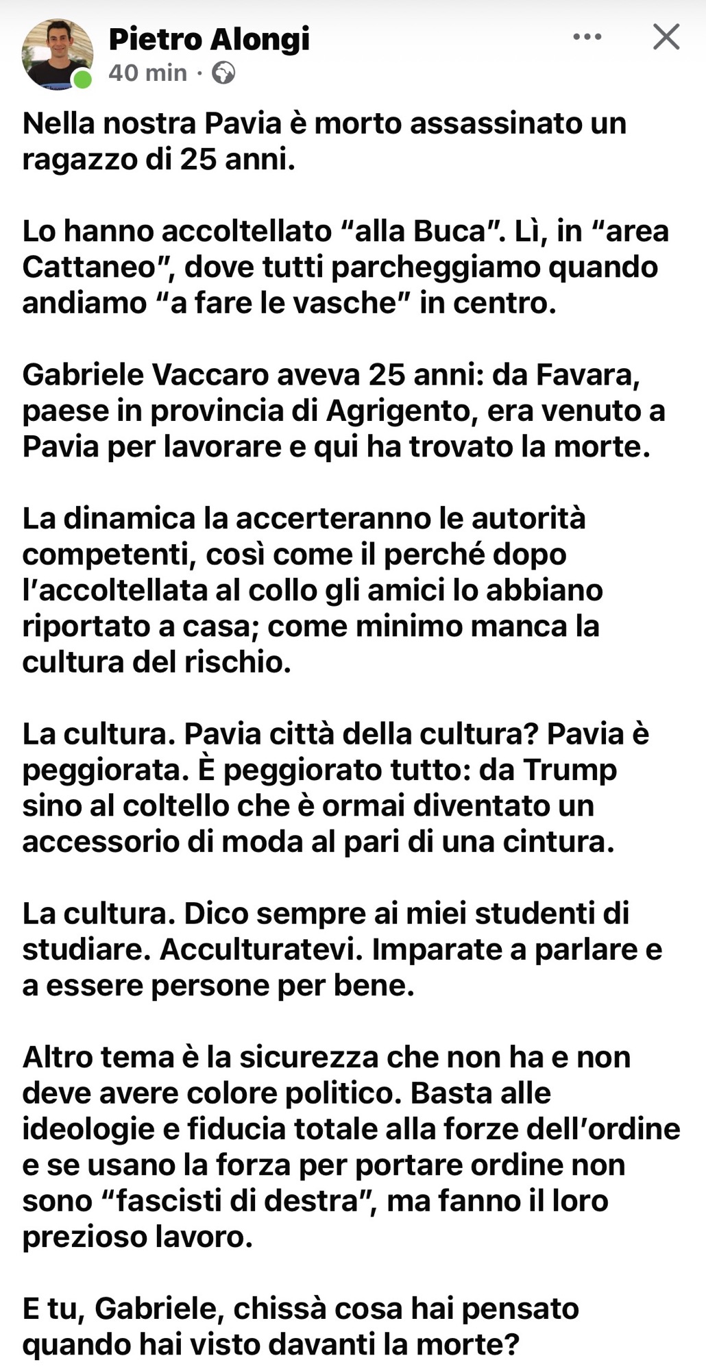 L’unico che interviene è il consigliere di maggioranza Pietro Alongi: