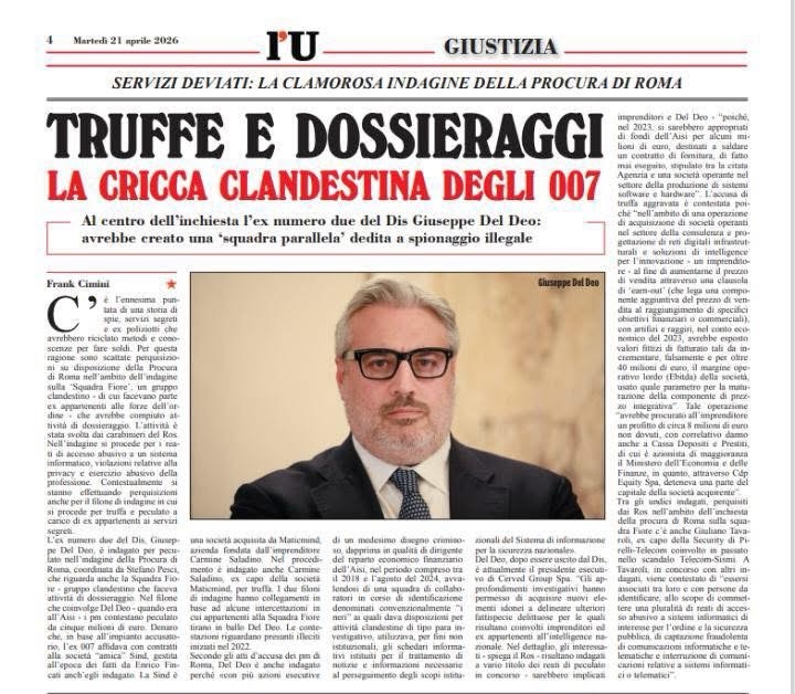 Anteprima di Frank Cimini in edicola domani.