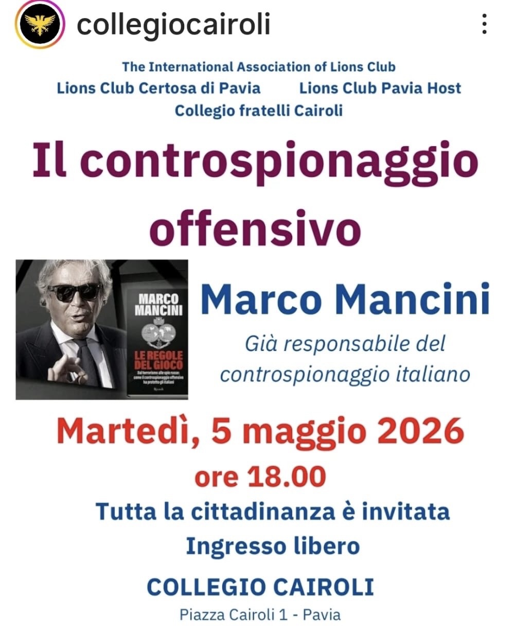 Martedì 5 Maggio ore 18 presso il Collegio Cairoli di Pavia.